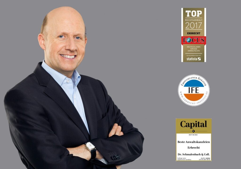 In den Ausgaben des FOCUS SPEZIAL 2015, 2016, 2017 und 2018 (Deutschlands Top-Anwälte) wird Dr. Bernd Schmalenbach im Fachbereich Erbrecht von der Redaktion des FOCUS als Top-Privatanwalt aufgeführt.